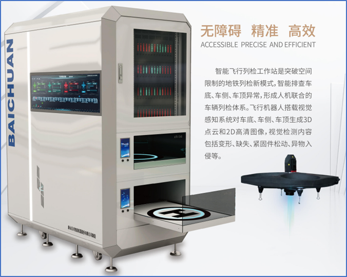 智能飞行列检机器人是依托唐山百川智能机器股份有限公司和唐山工业职业技术大学共建的机器人共享制造工厂研发的地铁车辆列检作业智能机器人,其4架智能飞行列检机器人联合作业25分钟可完成1列地铁车辆的列检任务,技术水平国内领先,目前该产品业内市场占有量居全国第一。同时,依托百川共享工厂平台,有效推进京津冀产业共同发展,形成系列产品孵化典型案例。如助力中科院智能农机团队成功实现伽马能谱测土车的产业化等。